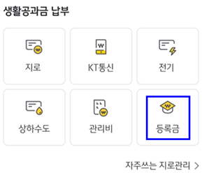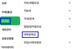| 2 | 메뉴 > 공과금 > 등록금 납부 |