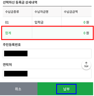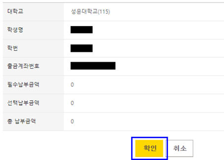 등록금 「0원 등록자(전액 장학생)」 수납 방법 안내