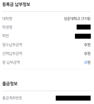 (등록금 고지서를 수령하지 못한 경우, 학교 홈페이지 > 종합정보시스템 > 등록금 고지서 메뉴에서 확인 가능) | |
